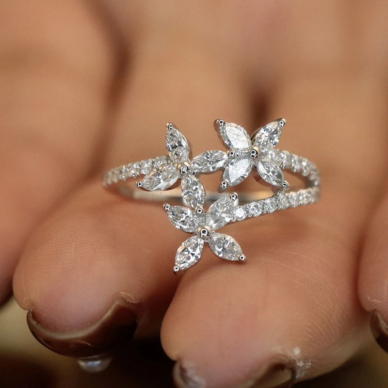 This stunning 18K white gold cocktail ring is the perfect choice for women seeking fine jewelry that embodies elegance and modern flair. Designed with a prong setting, this customized ring features inlaid diamonds that create a captivating focal point, making it ideal for weddings, engagements, anniversaries, or birthday celebrations. The trendy plant-inspired shape adds a unique touch, ensuring it stands out in any jewelry collection while symbolizing your love and commitment.